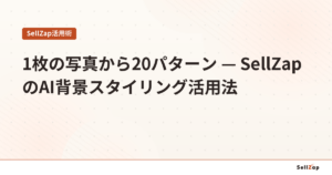 SellZapなら、1枚の写真からInstagram推奨の1080×1350pxサイズで20パターンを一括生成。グラデーションや季節テンプレートなど、フィード映えする背景が揃っています。生成中は次の商品の作業を進められるので、大量の商品画像も効率よく準備できます。